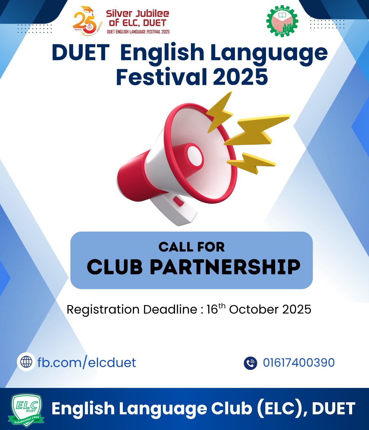 The English Language Club (ELC) of Dhaka University of Engineering and Technology (DUET) envisions a vibrant community where students grow into confident, fluent, and globally competent communicators. Our goal is to create a supportive platform that encourages the practical use of English in academic, professional, and everyday settings. We aim to inspire leadership, creativity, and collaboration through engaging activities such as debates, public speaking, writing workshops, and cultural exchange. By fostering a passion for language and communication, ELC aspires to help students succeed on international platforms and contribute meaningfully to a rapidly changing, interconnected world.